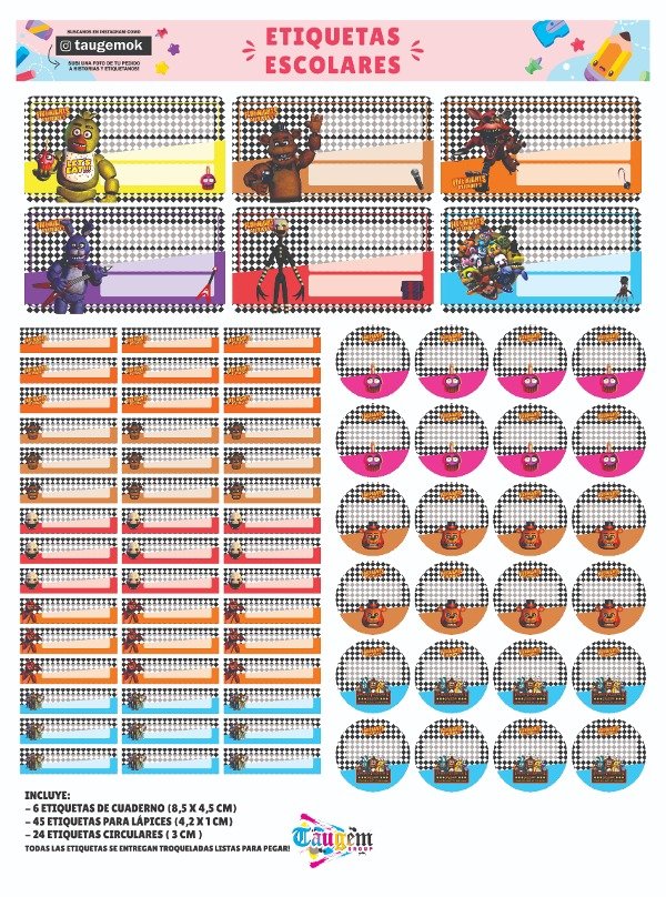 Etiqueta Escolar en Papel Autoadhesivo - Fine Night at Freddy's