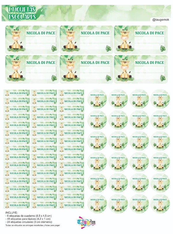 Etiqueta Escolar en Papel Autoadhesivo - Jirafa