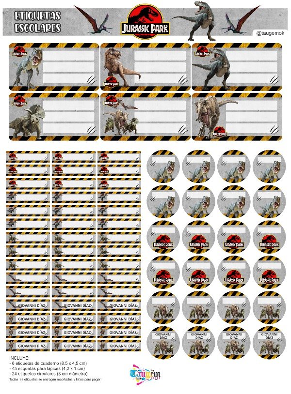 Etiqueta Escolar en Papel Autoadhesivo - Jurassic Park