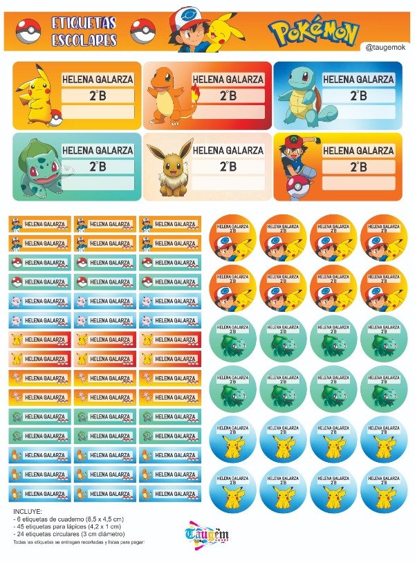 Etiqueta Escolar en Papel Autoadhesivo - Pokemón