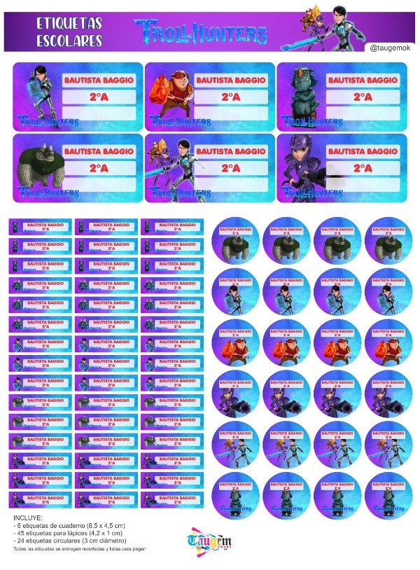 Etiqueta Escolar en Papel Autoadhesivo - Trollhunters