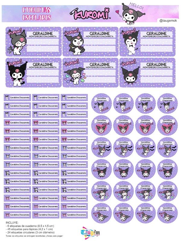 Etiqueta Escolar en Vinilo Adhesivo - Kuromi