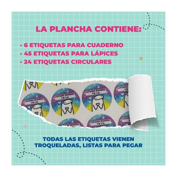 TODAS LAS ETIQUETAS VIENEN TROQUELADAS, LISTAS PARA PEGAR
